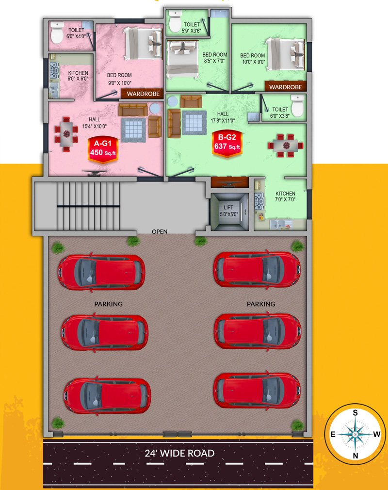 - G1 - 450 sqft - 1bhk - 20,70,000/- North Facing
