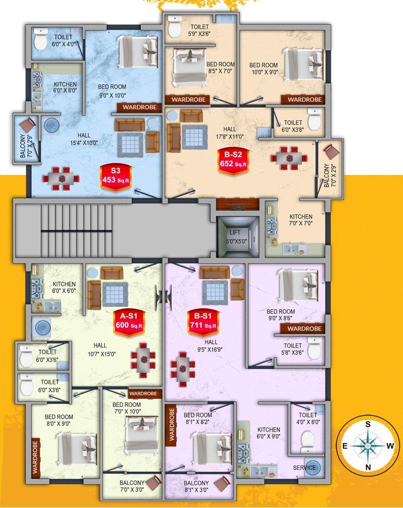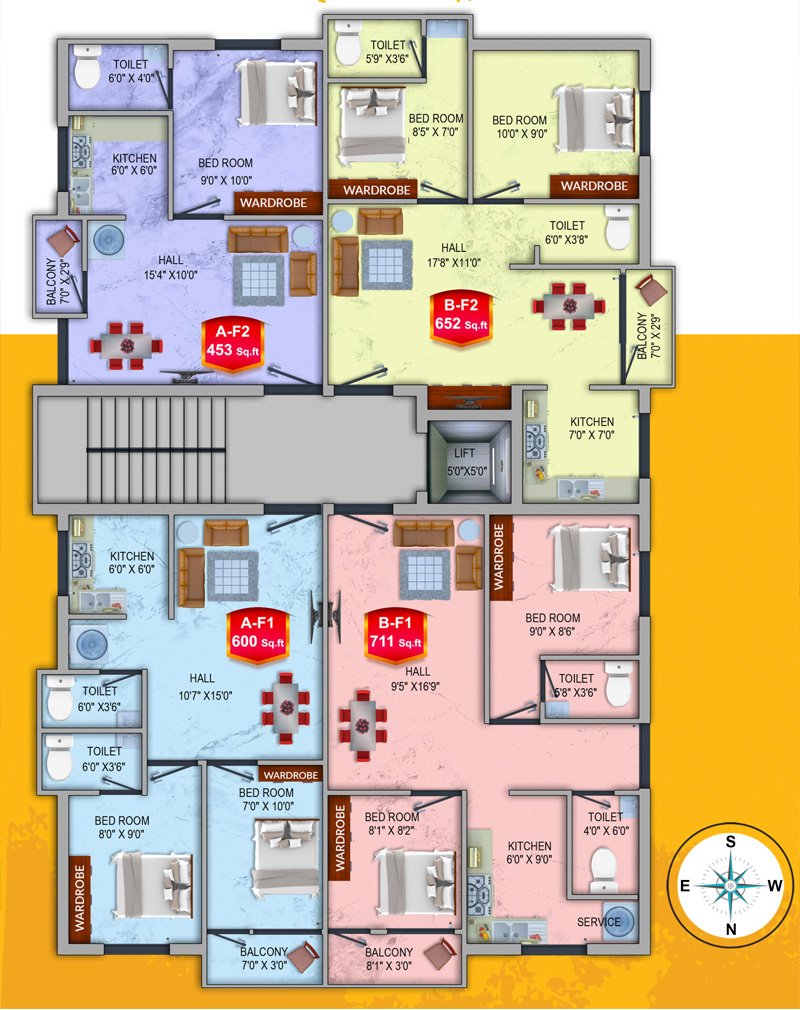 - BS1 – 711 Sqft - 2bhk - 32,70,600/- South Facing